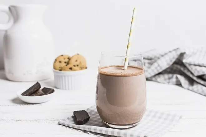 - Смешайте коктейль и какао. Взбивайте одну минуту.